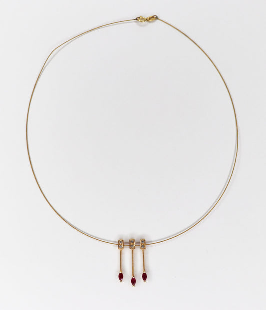 Midcentury 14kt Diamond & Ruby Fringe Necklace
