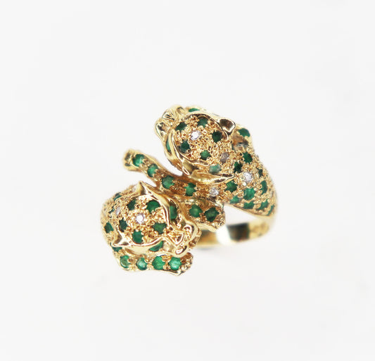 14kt Emerald & Diamond Double Jaguar Ring