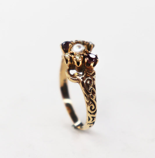 14kt Pearl & Garnet Ring