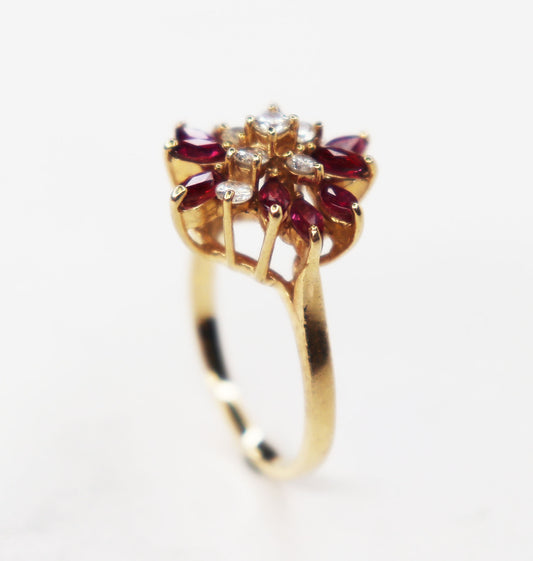 14kt Marquise Ruby & Diamond Cluster Ring