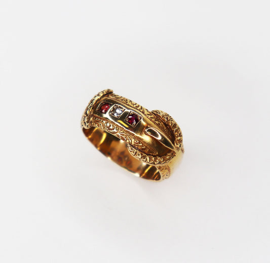Victorian 18kt Ruby Diamond Buckle Ring
